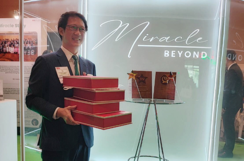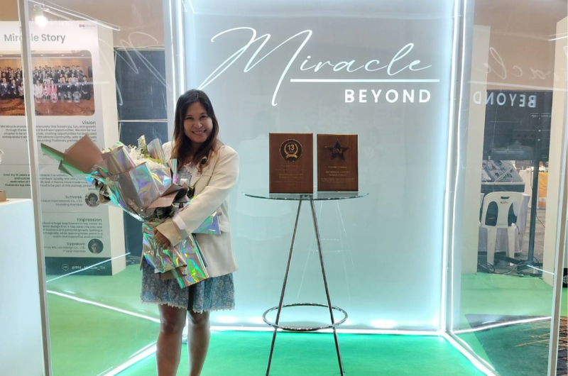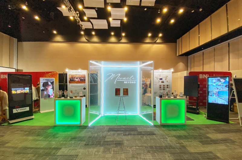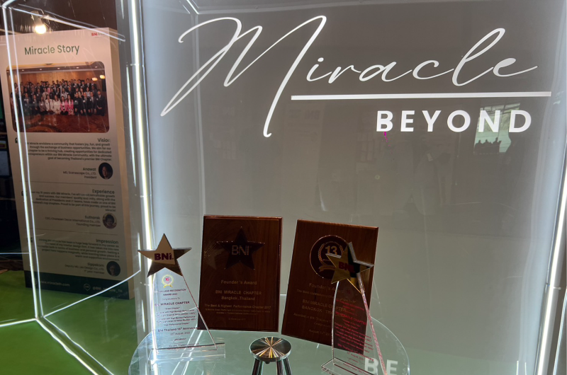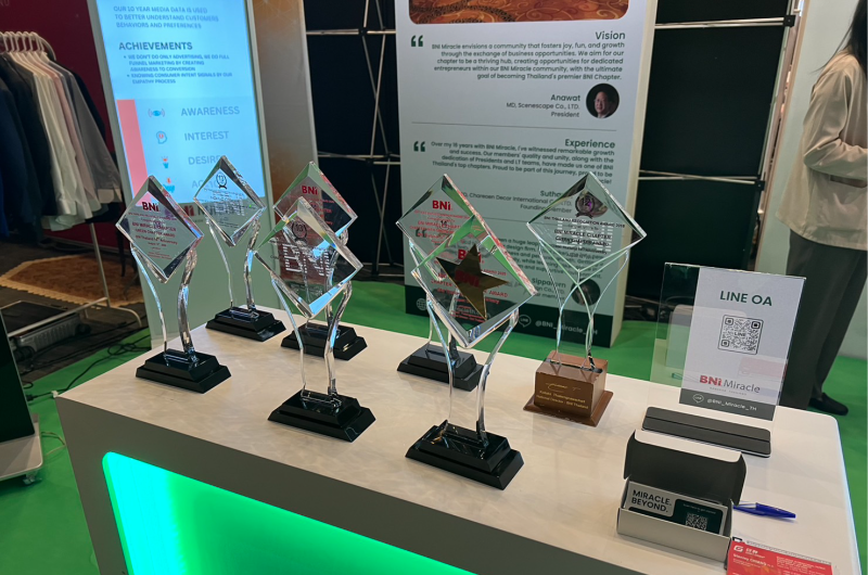 ปีนี้ Booth ของทาง Chapter ที่มีการแสดงรางวัลต่างๆ และ Promote สมาชิก BNI MIRACLE ด้วยความล้ำหน้าทางนวัตกรรม แบบ VR ซึ่งทาง Chapter ภูมิใจในการนำเสนอสมาชิกของเราทุกท่านอย่างมาก เพียงสแกนผ่าน QR Code สามารถบอกเล่าเรื่องราวธุรกิจของสมาชิกทุกคนใน Chapter ได้.